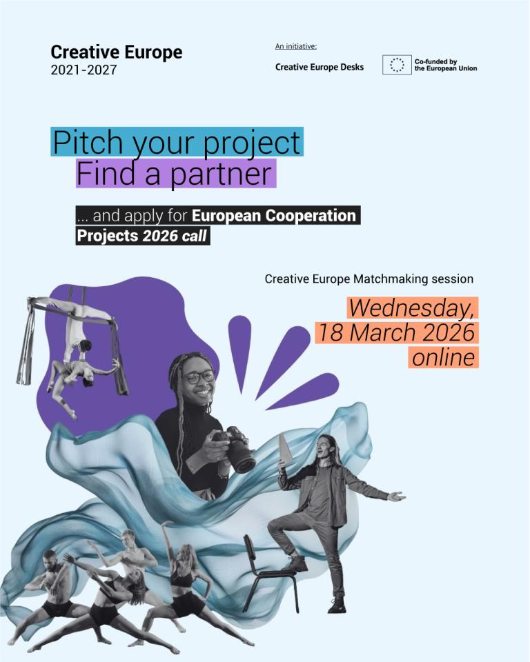 Канцелариите на Креативна Европа од овие земји ве покануваат да се приклучите на онлајн сесија за поврзување (Matchmaking session) наменета за презентација на проектни идеи и барање партнери за аплицирање на повикот „Европски проекти за соработка (2026)“/„European Cooperation Projects (2026)“.